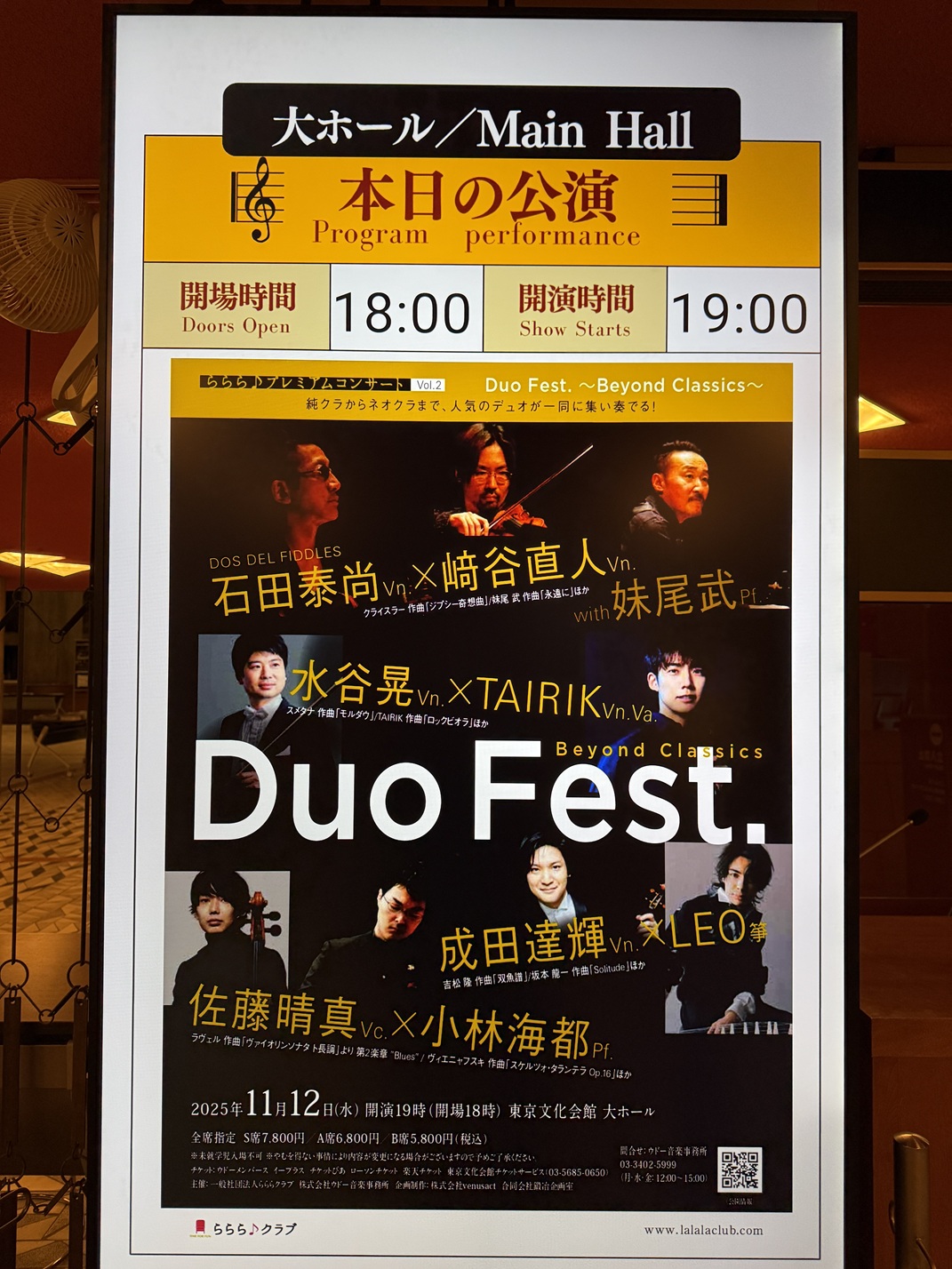 | 2025.11.12 | 🎻🎹ららら♪Duo Fest! Vn、Va、箏、Pf、5弦Vcで音が駆け巡り、9人の個性が調和し心に染み入ります、beyond!お見事です🤩